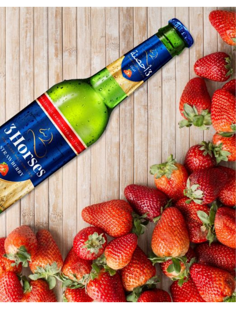 3 Horses - Bere fara alcool, cu aroma de capsuni, certificata halal, sticla - 0.33l / bere Olanda