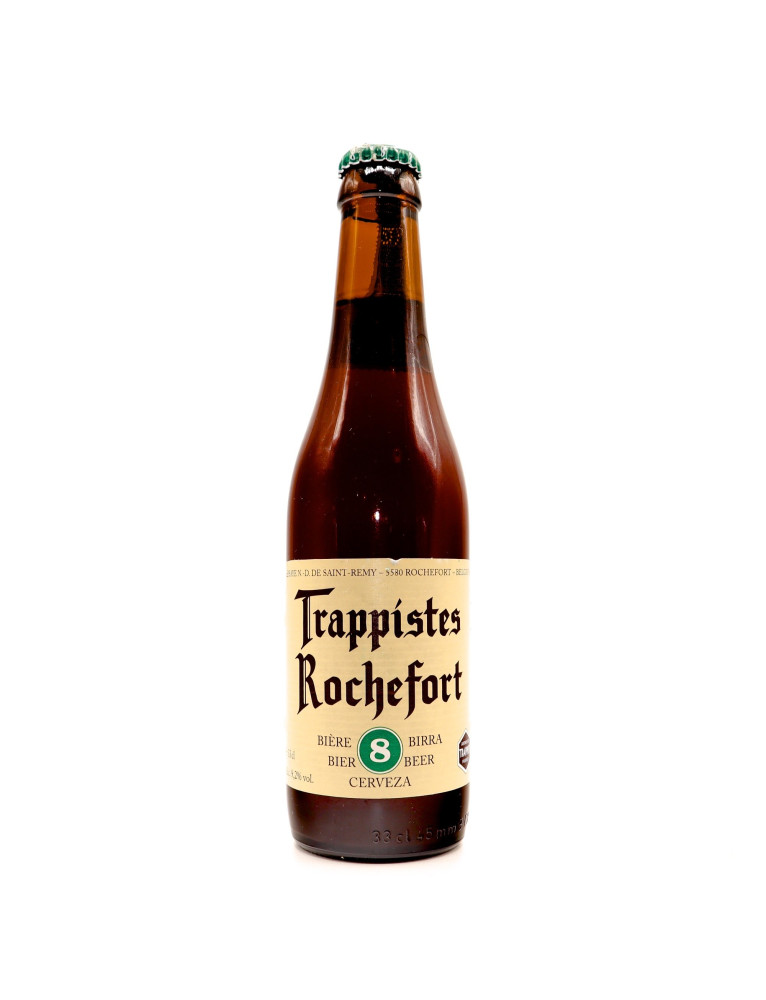 In timp ce reteta de baza pentru cele 3 beri Rochefort ramane aceeasi, ceea ce face diferenta si definitiveaza caracterul este cantitatea de malt si zahar caramelizat. Rochefort 8 a fost produsa pentru prima oara in anul 1954, fiind considerata cel mai tanar membru al familiei Rochefort. Aceasta nu este o bere densa, grea, este o bere savuroasa care coboara usor pe gat, nivelul de carbonatare fiind fin, nefiind foarte pronuntat. Nivelul de alcool care se simte in partea finala a degustarii nu te lasa sa uiti ca vorbim totusi de o bere trapista autentica care nu te lasa sa o grabesti si sa o bei ca pe o bere care stinge setea. Mai degraba o bei cu inghitituri mici pentru a-i aprecierea gustul, savoarea si taria. Este o bere dulceaga cu nuante de ciocolata, placuta, cu caracter.